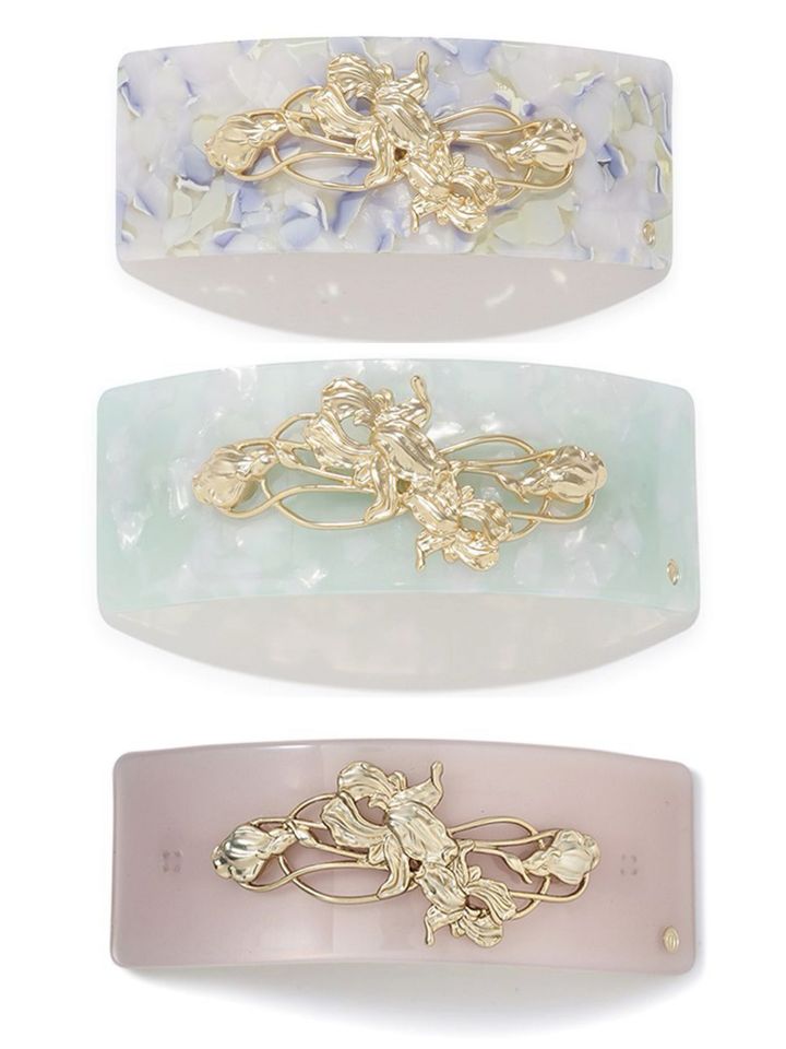 春色が特にオススメ!アイリスのレリーフをポイントにしたLサイズの【バレッタ】