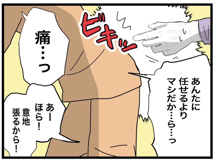 もうこれ以上夫に何か頼みたくない…! 我慢の限界を迎えた妻は、夫が取りだしたジャムとツナ缶を取りあげてキッチンへ。任せたところで横で助言していないと夫は動けないし、ゆっくり休むことなんてできない…。だったらもう任せたくないと思う妻の気持ちはわかりますが、意地を張り続けても腰に負担が…。八方塞がり状態の妻、いったいどうするのでしょうか…!?
