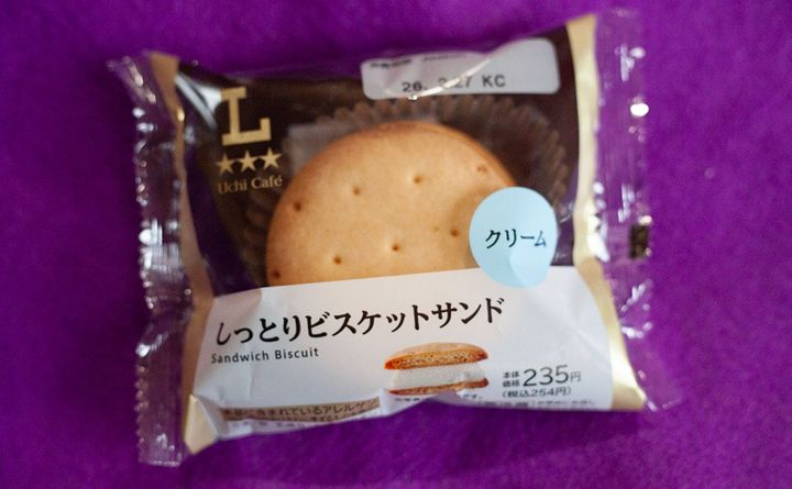 2026年2月23日(月)、ローソンが発売したのが、「しっとりビスケットサンド クリーム」(税込254円)という新商品です。