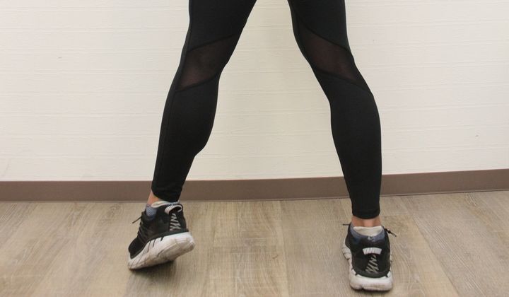 1.肩幅より少し広く、つま先を少し外に開いて立つ