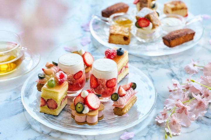 3月スタートの「苺のアフタヌーンティー ~ハーモニー第二楽章~」では、スイーツ全体の構成が大きく変わり、桜色を基調としたラインナップになります。花の形をしたタルトをはじめ春を連想させるスイーツや、旬の野菜や魚介を使用したセイボリーなど新たなメニューが登場します。