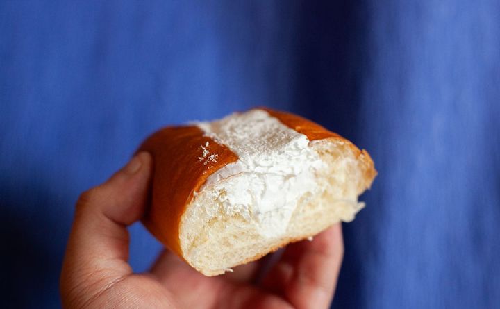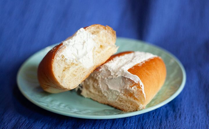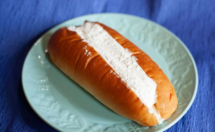 さっそく開けてみると、コッペパンの真ん中の割れ目に、たっぷりのミルクホイップが詰まっていました。