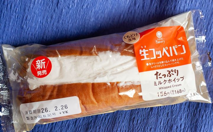 生地に生クリームなどを加えることで、しっとりとした生食感を実現した、ファミリーマートの「生コッペパン」シリーズ。発売開始からわずか3日でシリーズ累計販売数110万食を突破したという超人気商品ですが、2026年2月24日(火)、新作が発売されました。それが、「生コッペパン(たっぷりミルクホイップ)」(税込168円)です。