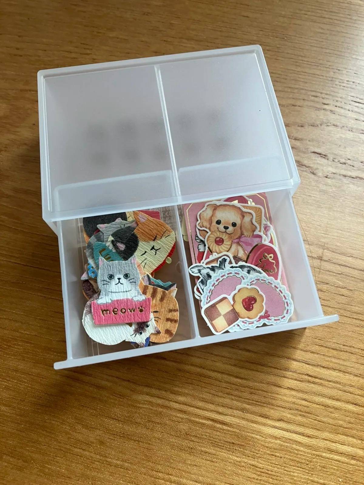 シールのほか、ふせんやクリップなど、文具小物の収納にもおすすめですよ♡