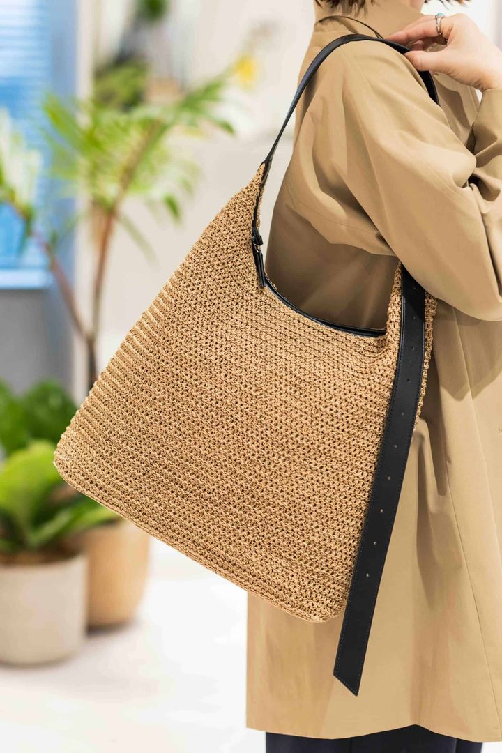 落ち着いたトーンのカゴバッグは夏前から活躍