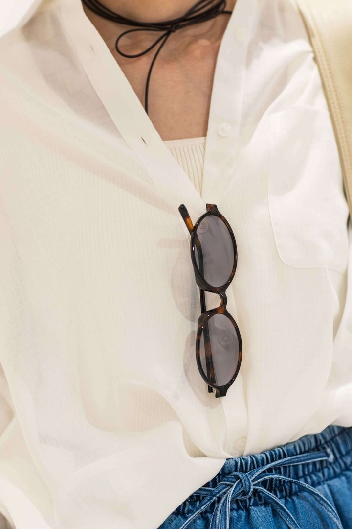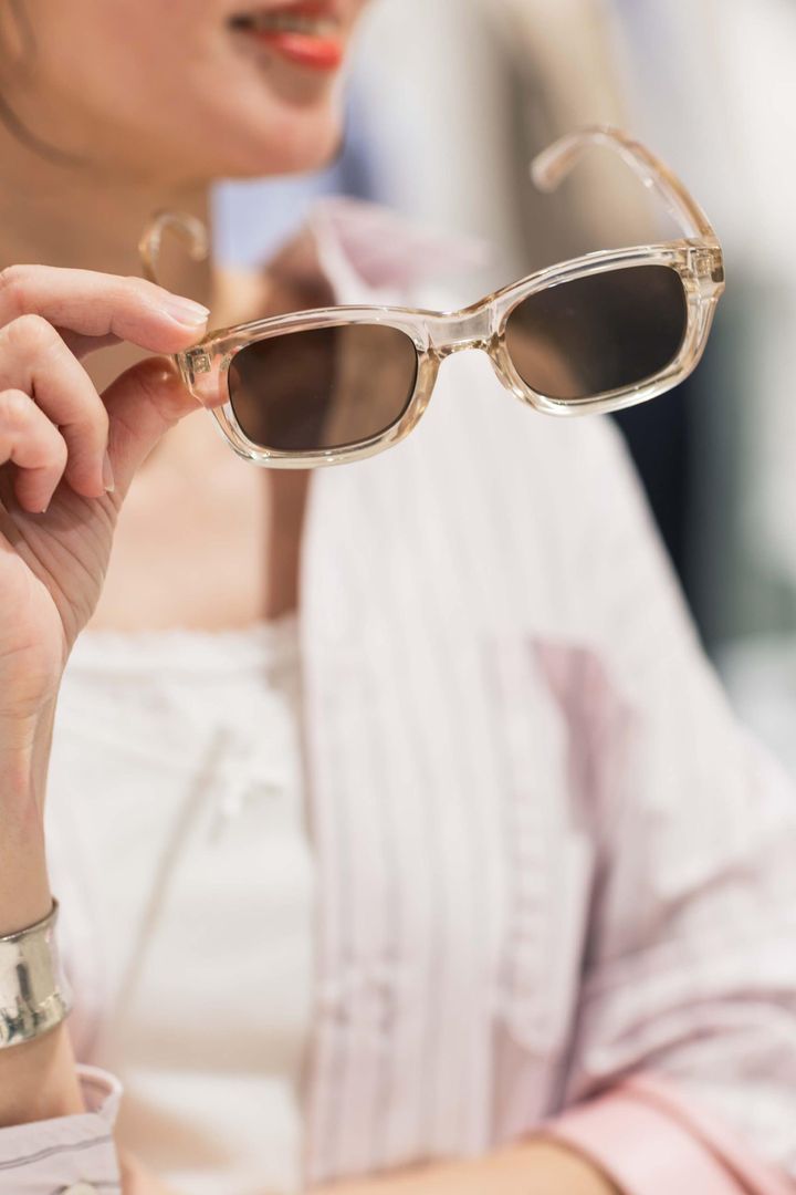 春夏に欠かせないサングラスはクリアフレームのものをチョイスしてコーデのポイントに!