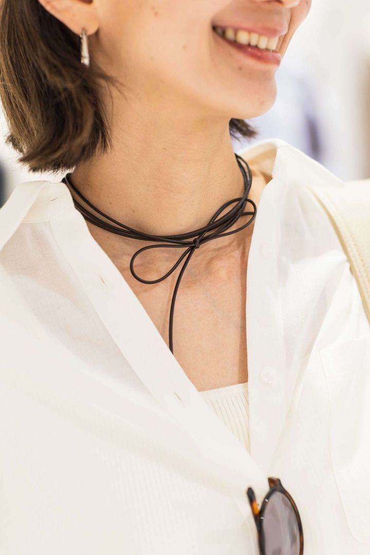 大人の可愛げもプラスできる上に首を長く見せてくれる秀逸小物