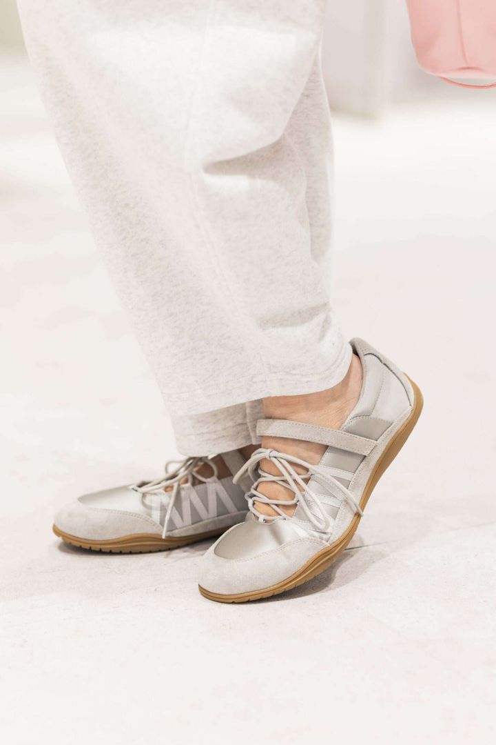 「今季挑戦したのはバレエシューズとスニーカーの快適さを掛け合わせたハイブリットなこちらのシューズ。オーバーシャツに華奢なレーストップスをレイヤードして、スウェットパンツを合わせたラフなスタイルに、普通のスニーカーを合わせるよりも数倍こなれた印象に!また足の甲が出ることで抜け感もプラスされ鮮度高めなコーディネートに仕上げてくれます。遊び心のある小物でアクセントをつけたら完成!」