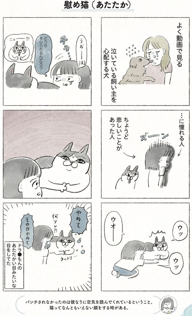 泣いている飼い主を心配する犬に憧れ、猫の前で泣いてみる。キレられるかと思いきや?/うちの猫は今日も塩対応