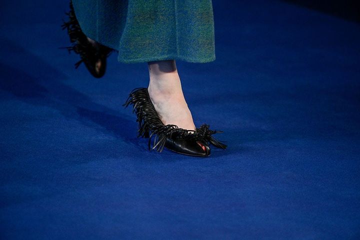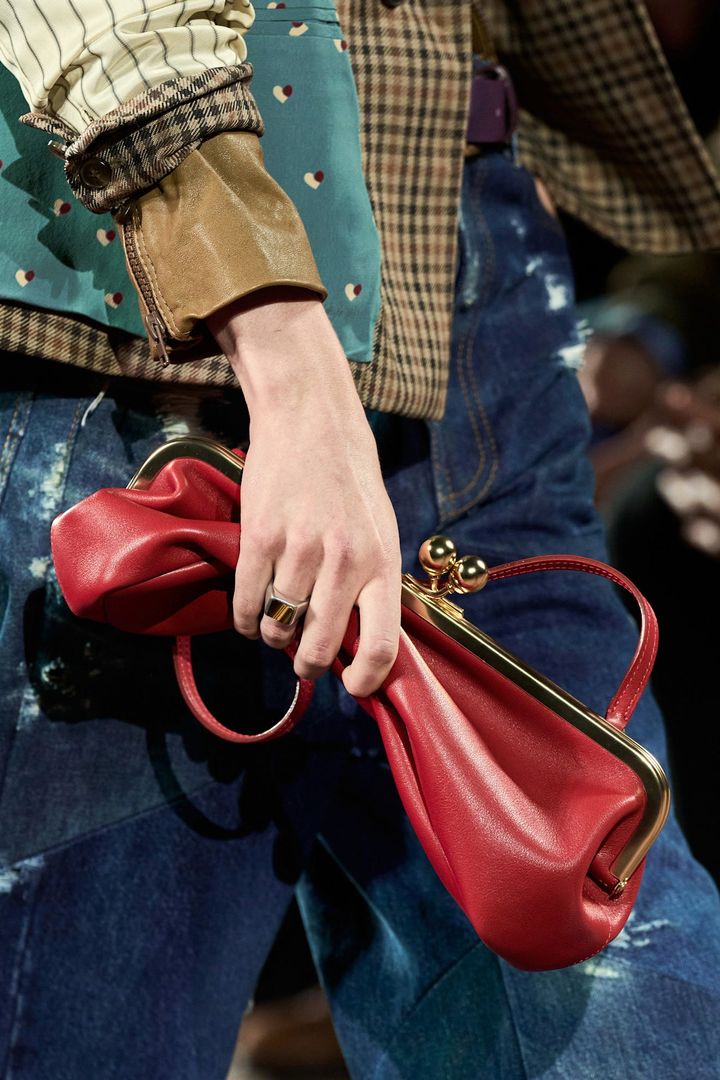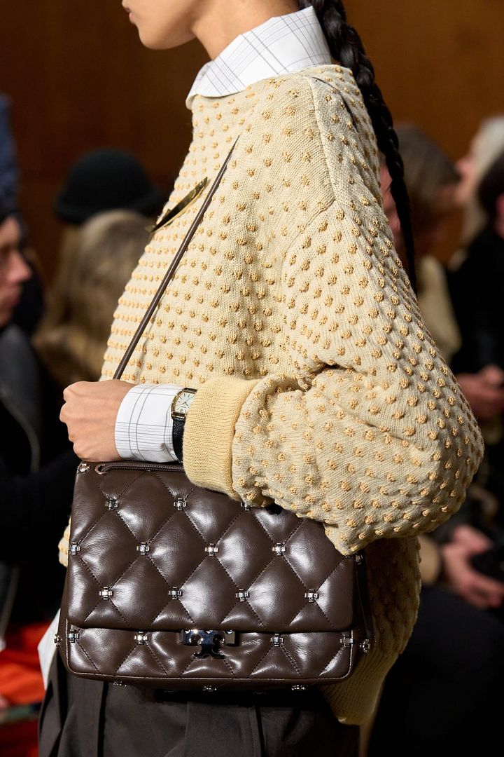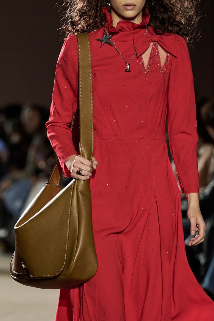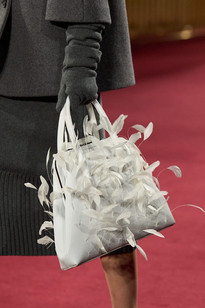完璧に仕上げることもできるはずなのに、あえて整えきらない。その不完全さを成立させてしまうところに、スコットの魅力がある。また、ヘックスバッグ(六角形ベースにホイップステッチをあしらったバケット型バッグ)やボウラーバッグといったアーカイブのシルエットを引き継ぎながら、カーフヘアやカシミヤスエードなどの異素材を掛け合わせた。フットウェアでは誇張されたスクエアトゥや引き延ばされたポインテッドキトゥンヒールが登場し、“歪み”という方向性を足元まで統一させる。服とアクセサリーを同時にアップデートすることで、女性像の変化をブランド全体へと浸透させていた。