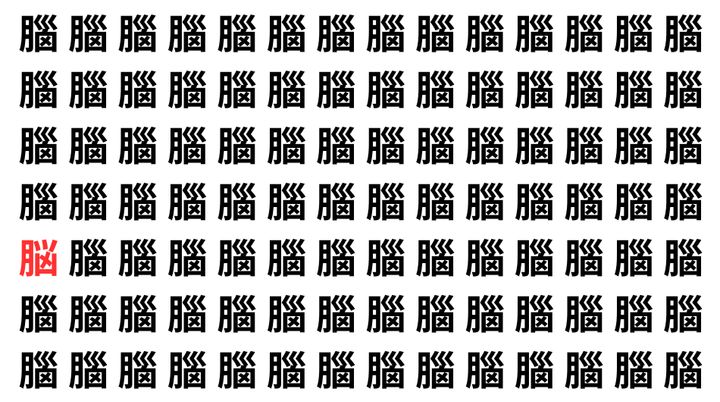たくさんの「腦」の中に、よく似た別の漢字が1文字だけ隠れています。