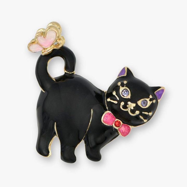 「アナ スイ」のアイコン、黒猫のティティをモチーフにした遊び心あふれるブローチ。 こちらを振り返るキュートな表情と、尻尾に止まった蝶がなんとも愛らしい♡