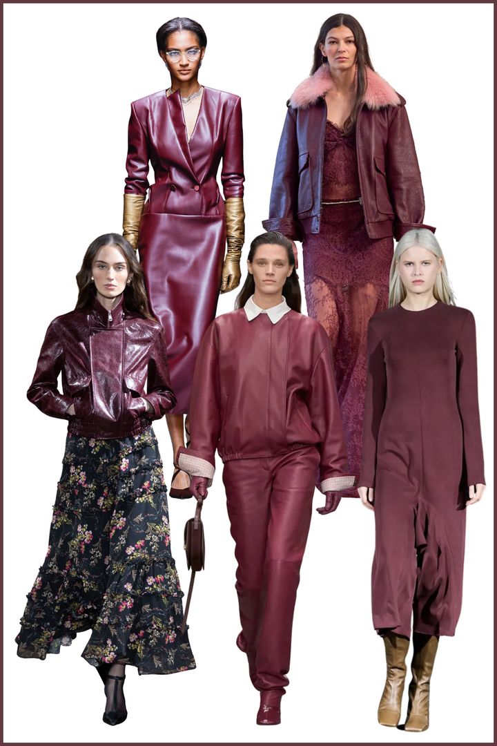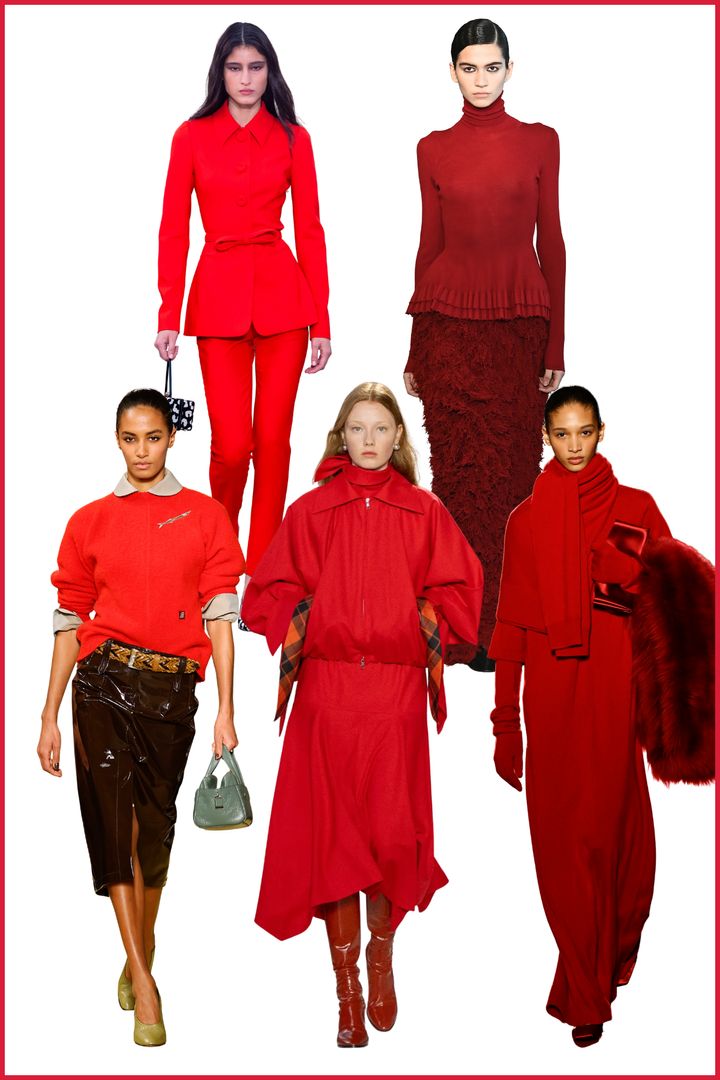 赤みを含んだレッドブラウンが、今季は落ち着いたムードカラーとして浮上。重厚になりがちなダークトーンに、さりげない色気を添えるのがレッドブラウンの持ち味。「ビブー モハパトラ」では艶やかなレザーを用いたエレガントなドレスで華やかに表現され、「カルバン クライン」はミニマルなセットアップによって色そのものの魅力を際立たせた。対して「ティビ」は、力の抜けたシルエットでリアルなワードローブへと落とし込んでいた。