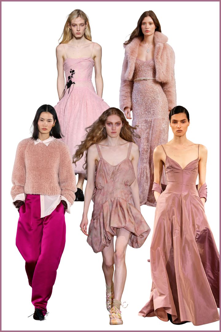 今季のピンクは、甘さを抑えたクレイピンクが主役。白みやグレーを帯びたくすみ感のある色調が、フェミニンでありながら大人びた印象をつくる。「アーデム」や「ラブシャックファンシー」では装飾性を生かしつつ色のトーンを抑え、「ウラ ジョンソン」は柔らかな素材使いで日常に引き寄せた。デコラティブなデザインでもトーンが穏やかな分、過剰にならず、大人のエレガンスとして成立する万能カラー。