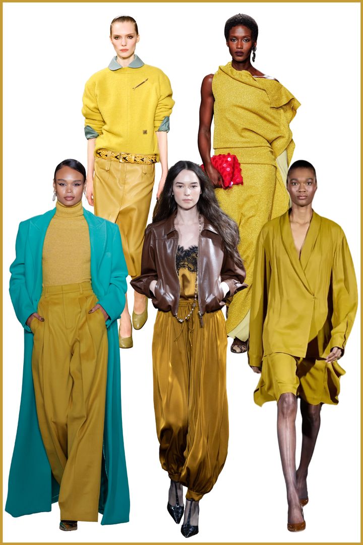 渋みのあるマスタードイエローが、今季のランウェイで差し色以上のポジションに。鮮やかさを抑えたトーンが特徴で、ブラウンやカーキに近い感覚で取り入れられるため、主張がありながらもスタイリングに自然となじむ。「サンクアセプト」では、落ち感のあるパンツやレースキャミソールで軽やかさを加え、「トリー バーチ」はニットを用いた肩の力を抜いたデイリーな提案に。一方、「ザンコフ」では、構築的なシルエットと素材感を生かし、マスタードイエローをよりドレッシーに昇華。