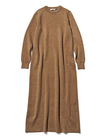 ブラウンワンピース/SLOANE(ザ ショップ スローン 新静岡セノバ店) スリットもポケットも排した、特徴は素材だけのミニマルデザイン。ダブルフェイスの厚め生地はやわらかな着心地に加え、体のラインを拾わないうれしい効果も。
