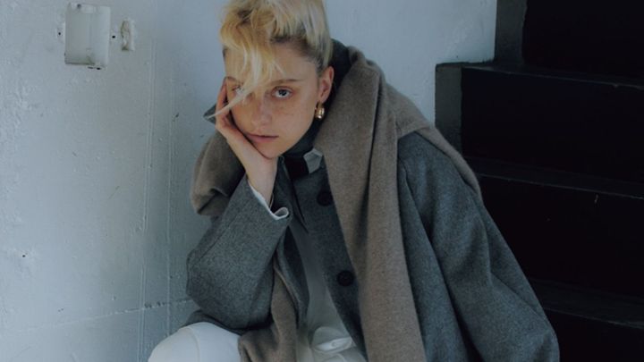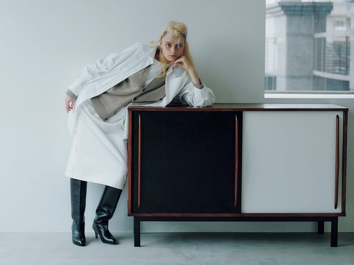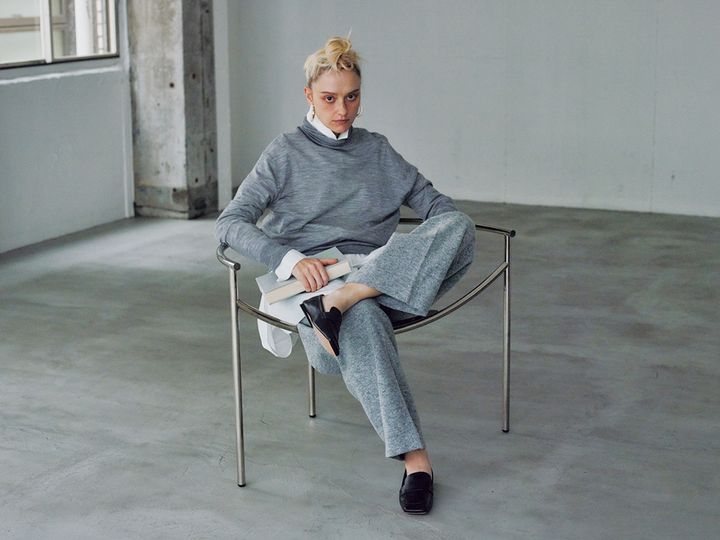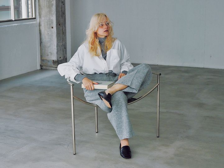 エフォートレスなグレーをシャープに導く白のさし色