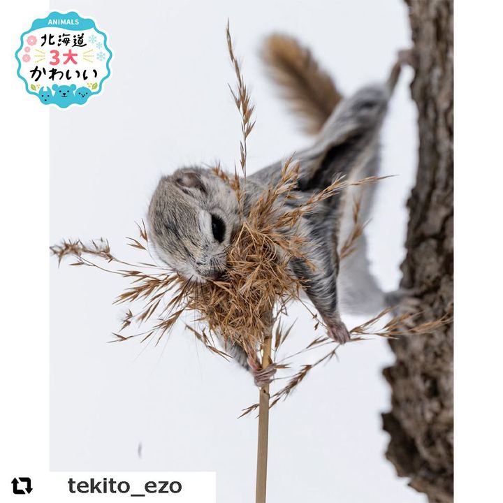どちらかと言うとジッとしていて、キョトンとしているイメージのエゾモモンガですが、このお写真はちょっと雰囲気が違いますね。