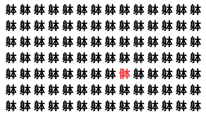 たくさんの「躰」の中に、よく似た別の漢字が1文字だけ隠れています。