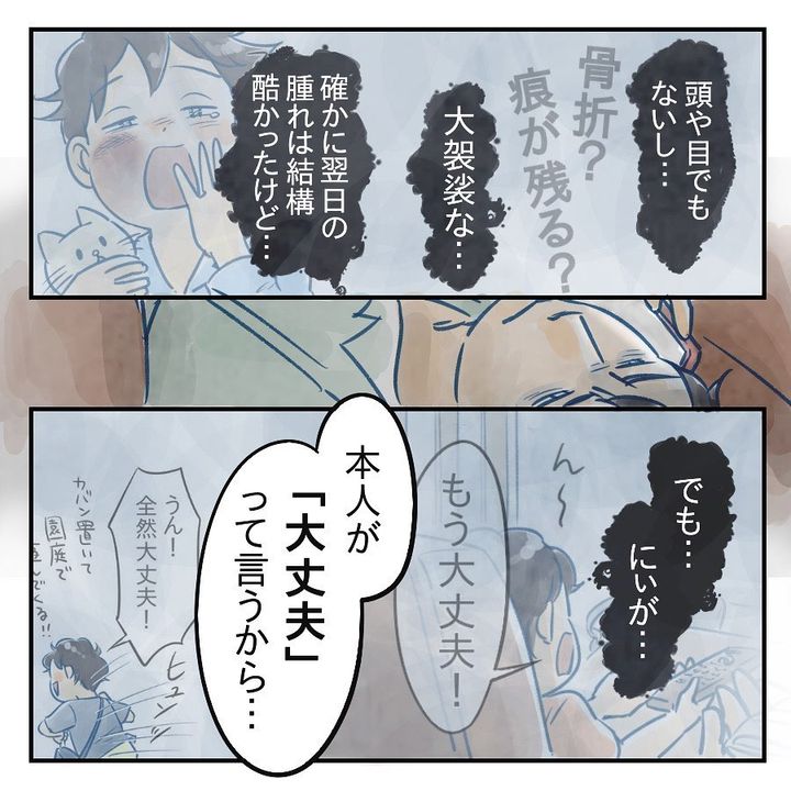 「なんで冷やしたり病院に連れて行ったりしなかったの!」と延々と責められる。