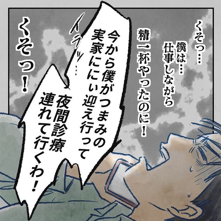 義母に長男を預け、少しでも寝て体調を整えたい夫だったが、つまみさんから長男の頬の打ち身の件で電話がきてしまった。