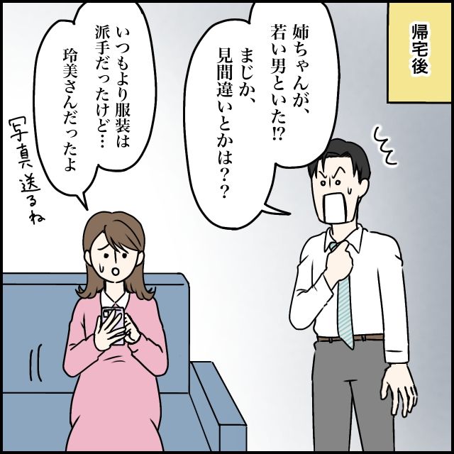 私の話を聞いた太一は、「姉ちゃんが若い男といた!?まじか、見間違いとかは?」と、驚きを隠せない様子でした。あの玲美さんが若い男性と歩いていたと聞けば、驚くのも無理はありません。「いつもより服装は派手だったけど、たしかに玲美さんだったよ」私はそう言うと、ショッピングモールで撮った写真を太一に送りました。