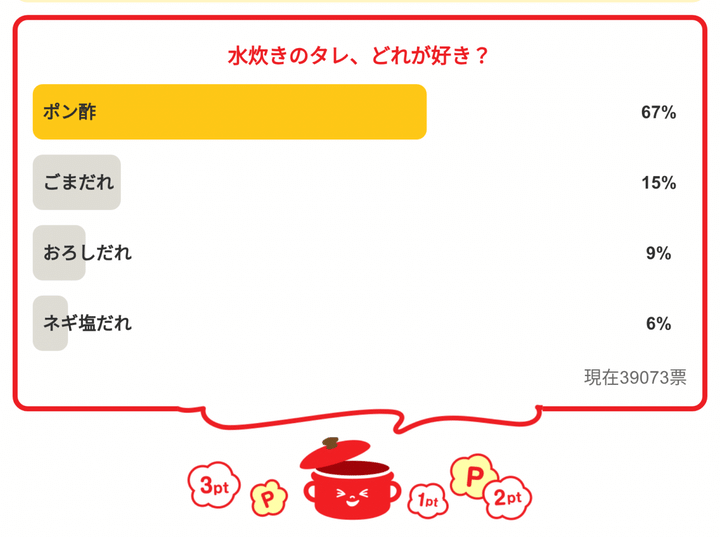 ・「水炊きのタレ、どれが好き?」の結果は…
