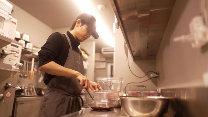 宇垣は一口、口に運ぶと「おいしいです! 食感がめっちゃ楽しいですね」と笑みを浮かべる。「この小豆はすごく味が濃いです。うちは煮汁をあまり切らないという製法でやっています」と語るのはシェフの近藤さん。豆やナッツの煮汁も使い、風味と香りを立たせている。さらに、植物性の優しい原料のみで作ることで、カカオの味が引き立つのだそう。
