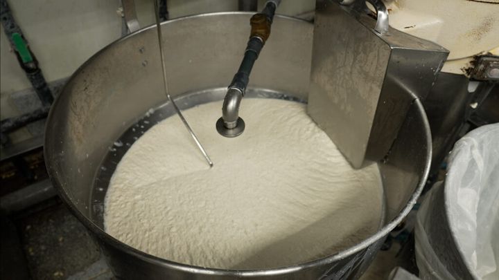 作業は深夜1時から始まる。おいしさのヒミツは、大豆を浸ける水の温度。豆腐作りのプロ・西島さんは、「秋から冬場にかけては約15~16度で管理しています」と教えてくれた。温度が高すぎると豆が膨らみすぎて味がぼやけ、温度が低すぎると今度は味が薄くなるのだとか。軟水を使用することで雑味の少ない豆乳に仕上がる。そうして出来上がるのが、大豆固形分が15%の豆乳。「飲む豆腐」と言われるくらい濃厚な豆乳になるのだ。宇垣も「本当に、ダイレクトに豆腐を感じましたもん」と納得。