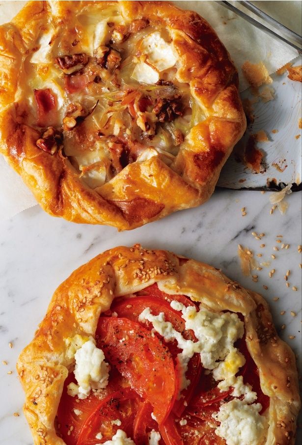 1品目に作ったのは、「型」を使わなくてもできる「カマンベールと長ネギの型なしパイ」と「トマトとカッテージチーズの型なしパイ」です。