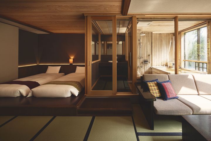 翠嵐 ラグジュアリーコレクションホテル 京都は、京都・嵐山の保津川河畔に建つ歴史的建造物を生かしたホテル。「先人のものを受け継ぎ、発展させながら将来を開拓する」ことを意味する「継往開来」というコンセプトのもと、2015年に開業した。全39室の客室には、それぞれ日本の伝統色をキーカラーとしたデザインがほどこされている。