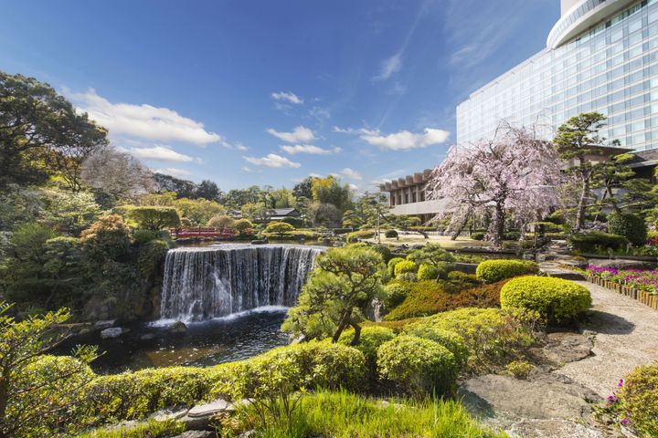 東京・目白の高台に佇むホテル椿山荘東京。総客室数265室の老舗ホテルを囲むのは、約5万㎡の広さを誇る日本庭園。都心とは思えない景色が広がるこの場所では、2月中旬に咲く河津桜に始まり、4月上旬の八重紅枝垂桜まで、約20種・100本の桜が次々と見頃を迎える。