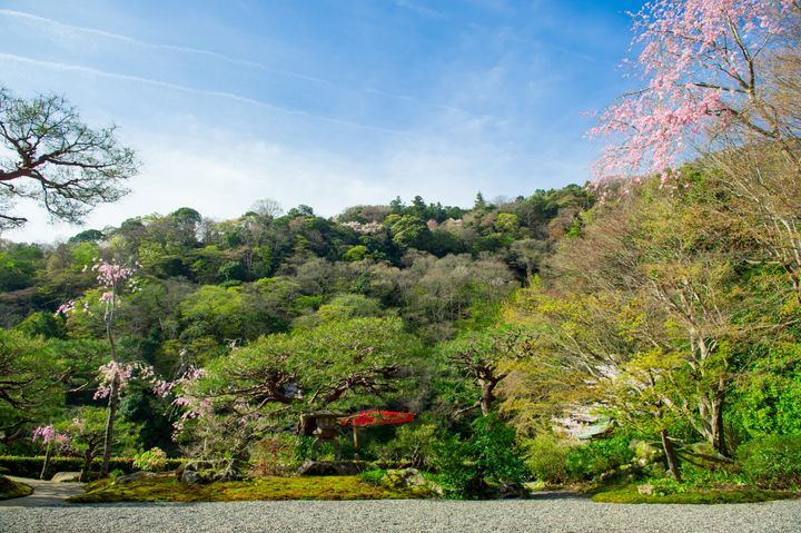 1年を通して、さまざまな花を咲かせてゲストの目を喜ばせるが、例年3月中旬からはヤマザクラ、シダレザクラ、ソメイヨシノ、ヤエザクラが次々と開花。庭園を望む客室やスイートルームからは、1日を通して少しずつ表情を変える桜の姿を追うことができる。また、庭園内にあるレストランを訪れたら、桜の景色と共に、春らしい食材を用いた料理を味わいたい。