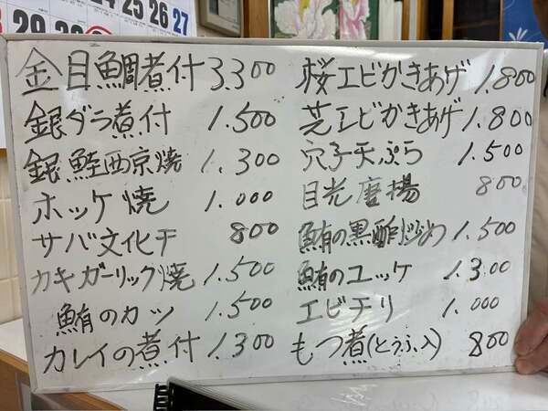 その日のおススメメニュー!新鮮な魚類が豊富です。