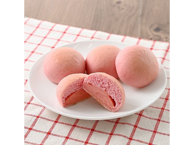 いちご味の生地に、いちごミルククリームを包んだ、ミニサイズのクリームパン4個入りです。