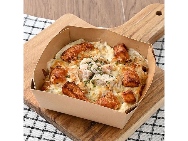 サンドイッチを作る際にできるパンの耳を活用した商品です。チキン・エリンギ・チーズ・玉ねぎなどの具材に、バターフレーバーオイルを使用したベシャメルソースを合わせた満足感のあるグラタンです。 ※静岡県の一部では取り扱いがございません。 東海で販売