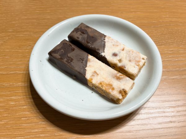 ヌガーショコラは中区吉島町にある「amelaterie」の商品。マシュマロで作ったヌガーの中にはクッキー、アーモンド、オレンジピール、パイナップルが入っており、上にはチョコレートがかかっています。 ヌガーらしいねっとりとした食感の中にマシュマロのふわっとした食感があり、今まで食べたことのない新食感。その中にクッキーとアーモンドのザクザク食感が加わり楽しいです。味はアーモンドの香ばしさと柑橘の酸味が強く、ミルクチョコで甘さが加わります。全体的に想像より甘過ぎず、食べやすかったです。