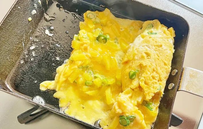 食感が楽しい!『たくあん入りの玉子焼き』