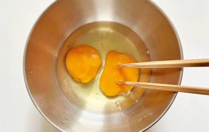 まずは、ボウルに卵2個ぶんを割り入れておきましょう。