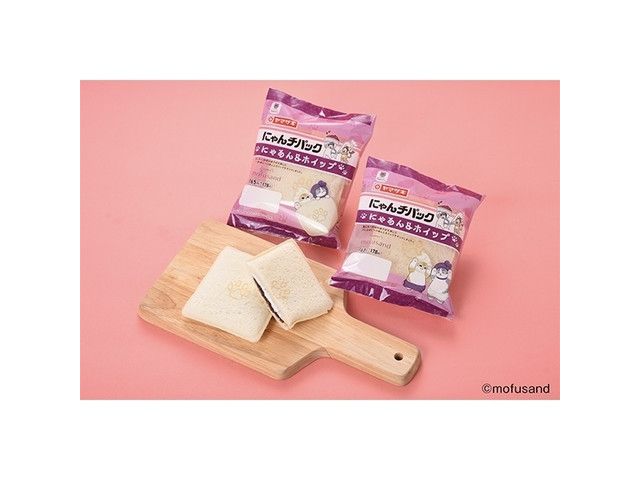 肉球の焼き印を入れたパンにつぶあんとホイップをサンドしたランチパックです。パッケージは「mofusand」とコラボレーションしたデザインで、全2種類です。