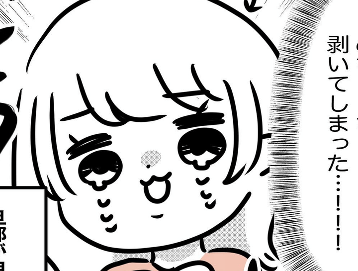 アカさんの顔や頭に発疹が広がり、かさぶたとなって次第に剥がれていく日々。たにさんは「剥がしてあげよっか?」と明るく提案しますが、アカさんは「やめて」と断ります。洗顔やタオルで拭いた時もかさぶたが落ち、枕やタオルにも付着します。「脱皮」と驚きながらも、たにさんは興味津々でした。最後は「頼むわ」と観念します。