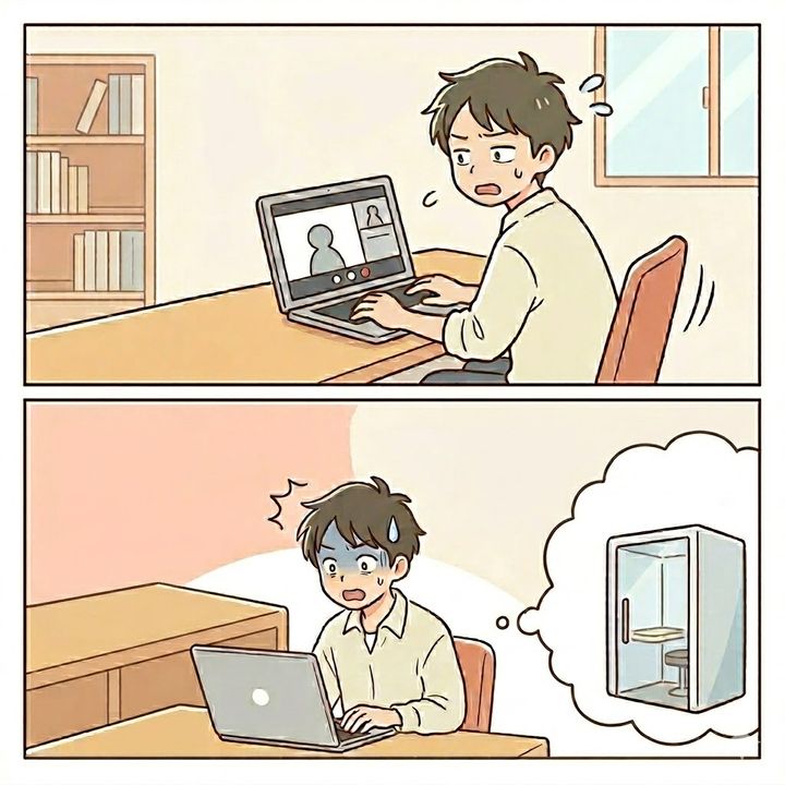「あ、通信トラブルだね。実は最近君のWi-Fiの調子が悪いようだから、あらかじめ君の自宅の最寄り駅にある個室ワークスペースを予約しておいたよ」