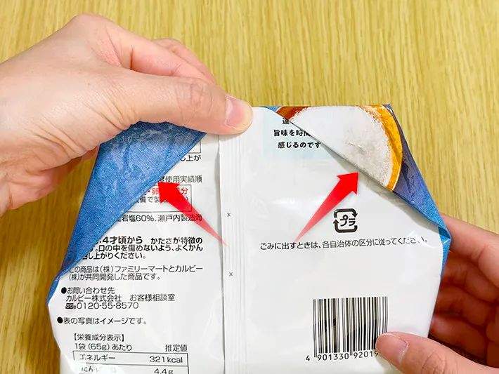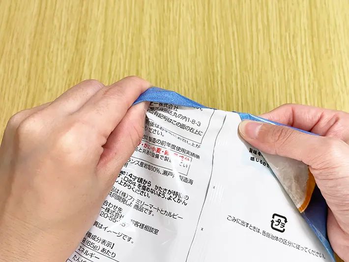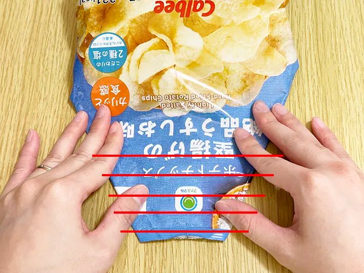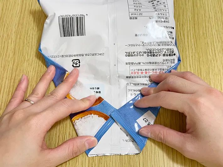 お菓子の袋を輪ゴムやクリップなしで閉じる方法をご紹介します。
