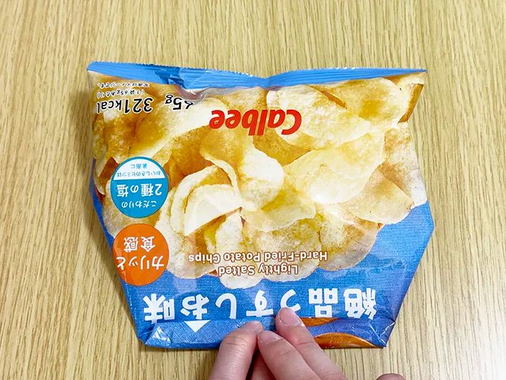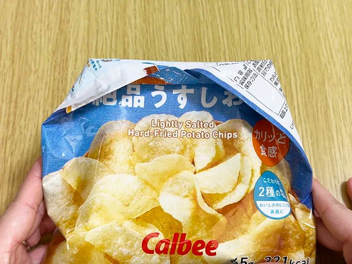 ちなみに、ポテトチップスよりも大きい和菓子が入った袋や、小さく細長い袋でも同様に閉じることができました。