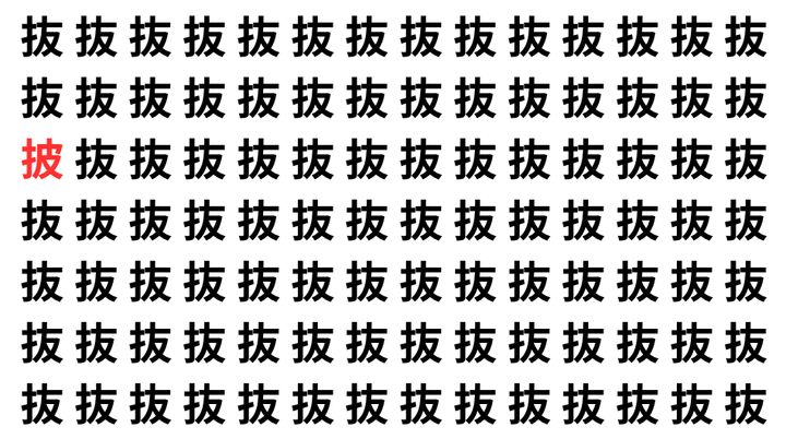 たくさんの「抜」の中に、よく似た別の漢字が1文字だけ隠れています。