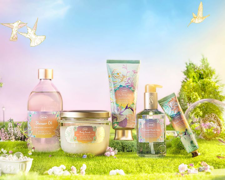 サボンの「ホワイトティー」は、春の訪れを告げるような香り。サボンを代表する多彩なアイテムがホワイトティーの香りを纏い、華やかなデザインの限定パッケージで登場。通常はホワイトティーの香りでは展開していないアイテムに加え、その香りにインスパイアされた限定アイテムを取り揃えた特別なコレクションです。