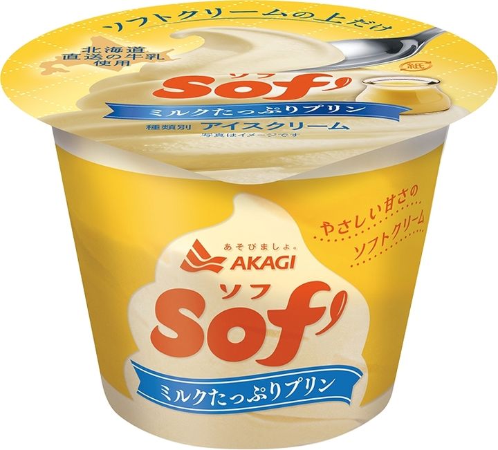 北海道直送の牛乳をたっぷり使用し、ミルク感あふれるプリンソフトクリームの上だけ。