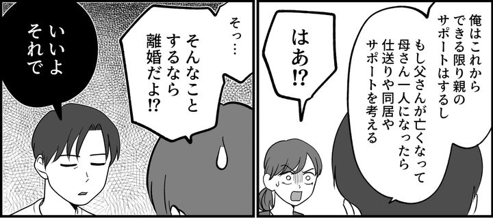 「自分の利益のために人のことを操ろうだなんて。支援するだけしてもらって、面倒なことはアユミに押し付けようって、そんな性格が悪いやつとは一緒にいられない! 今度は子どもたちを操作して、俺が悪者にされるかもしれないしな!!」旦那は離婚も覚悟している様子。
