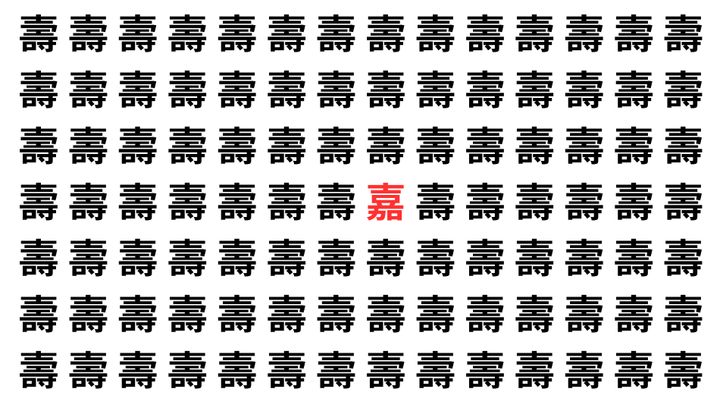 たくさんの「壽」の中に、よく似た別の漢字が1文字だけ隠れています。