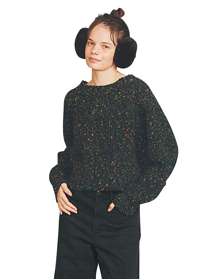 黒ミックスカラーニット 20,900円/ジャーナル スタンダード レサージュ(ジャーナル スタンダード レサージュ 銀座店) 鮮やかな原色が黒に映え、高揚感のある1着。ヴィヴィッドな色みを散らばることで、黒1色にはない華やかさやのっぺり感の払拭に好作用。